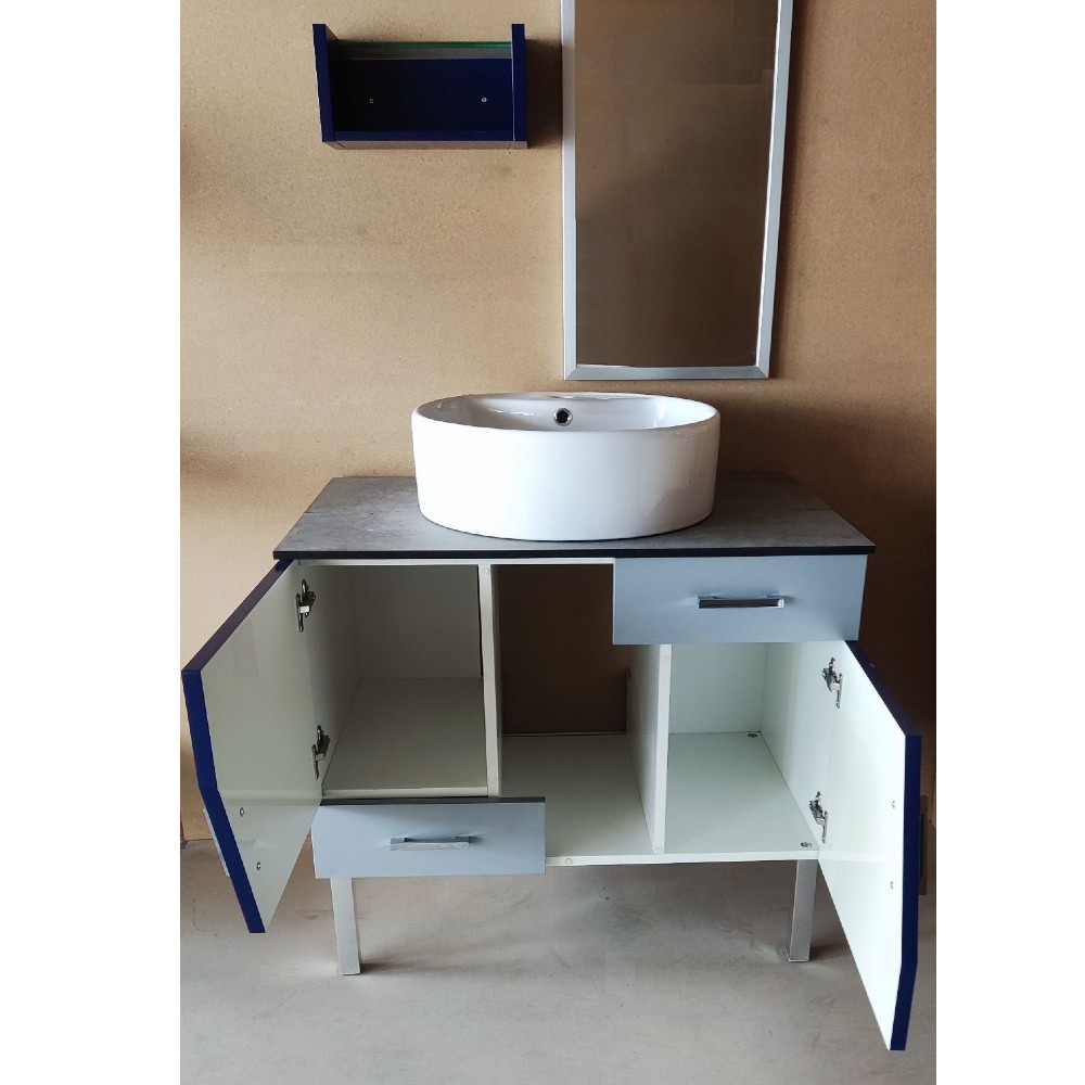 Έπιπλο μπάνιου με πόδια “ΜΗΛΟΣ 80″ μπλε – ασημί