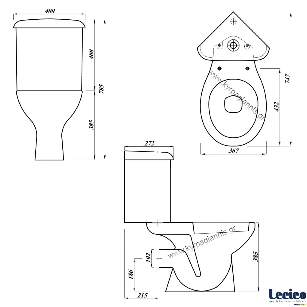 • λεκάνη γωνιακή ΧΠ πισωστόμια “P”