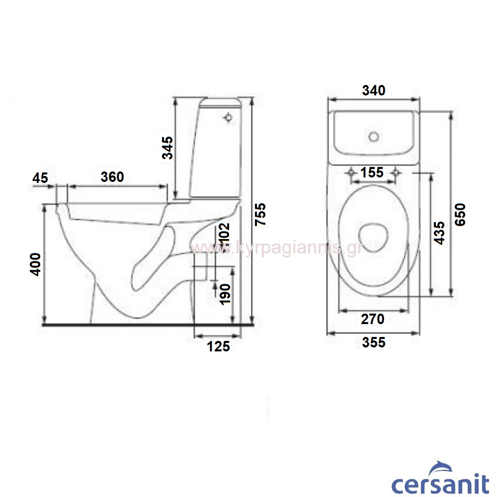 • λεκάνη Cersanit ΧΠ πισωστόμια “P”
