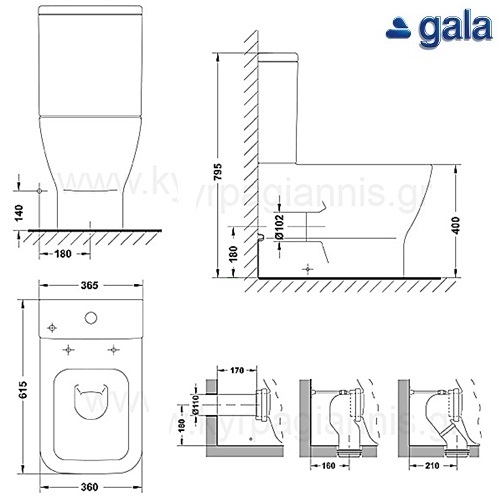 • λεκάνη back to wall πισωστόμια “P” ή κατωστόμια “S”