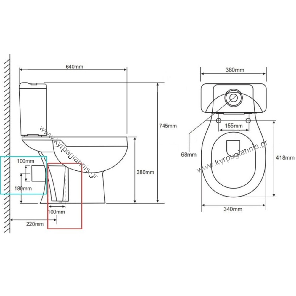 Διάσταση καζανακίου : 380x365x190mm