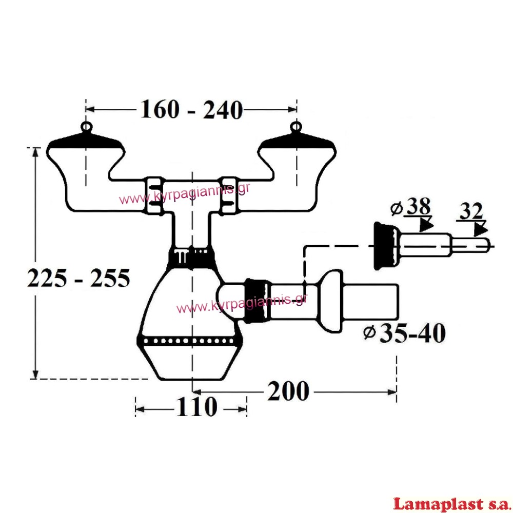 Σιφόν Κουζίνας Νο445 2πλό με παροχή