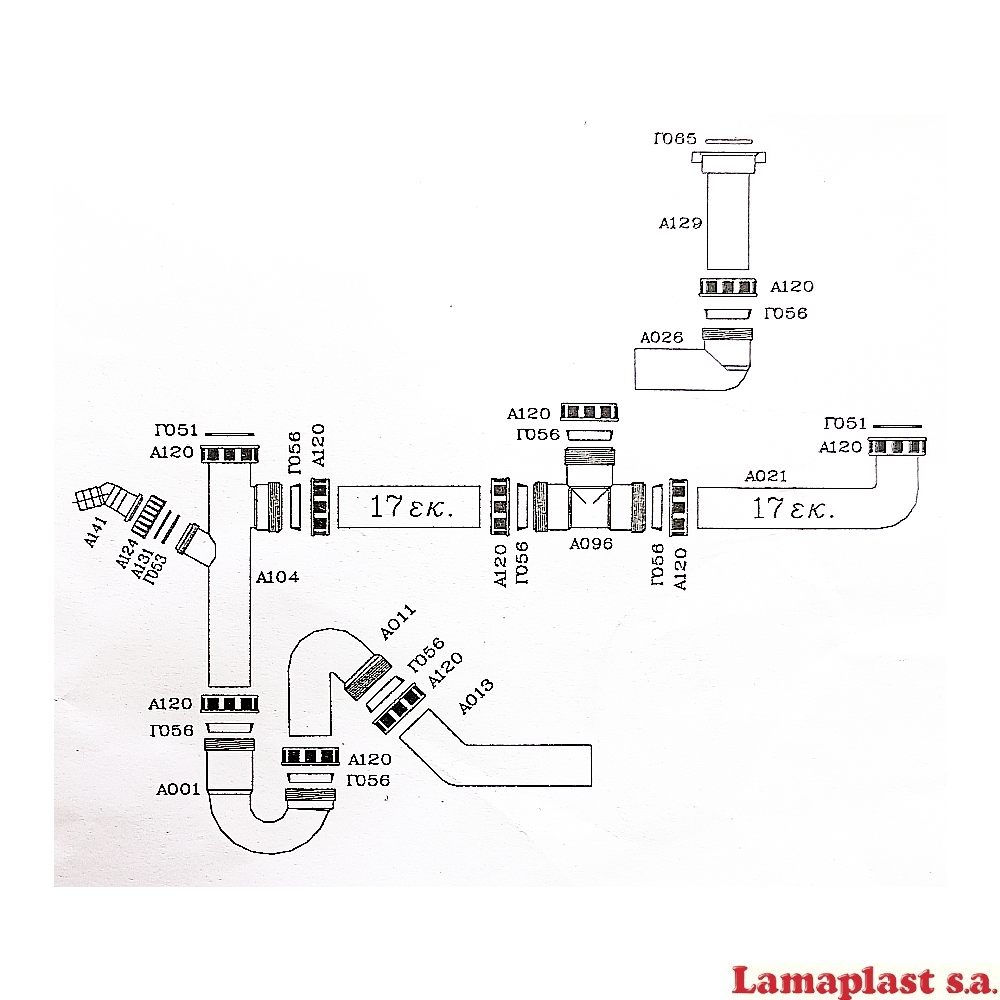 • Τύπος : Τριπλό σιφόνι (για σύνδεση τριών σημείων αποστράγγισης).