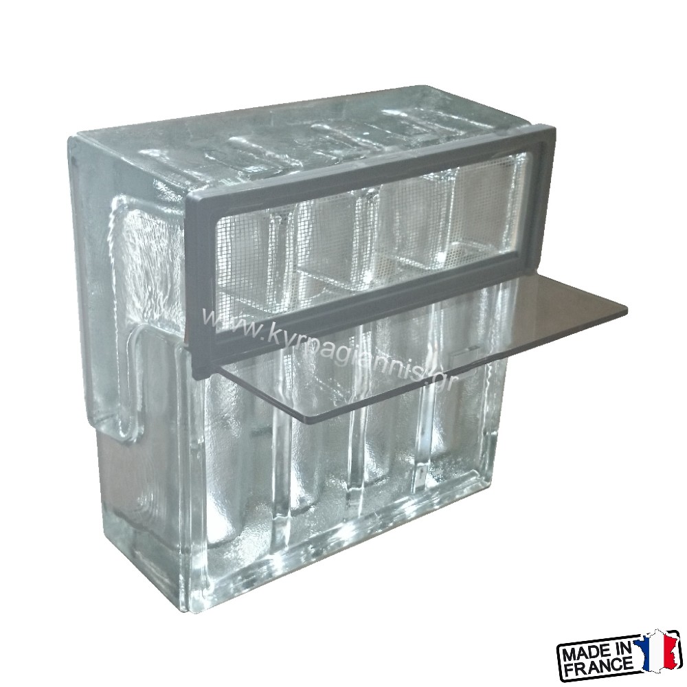 Υαλότουβλο Εξαερισμού 19x19x8 Γαλλίας άχρωμο για τοποθέτηση σε τοίχο με σκοπό τον αερισμό του χώρου και την προστασία από την υγρασία